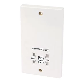 2-Gang Dual Voltage Shaver Socket 110 / 240V White