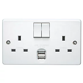 Crabtree Capital 13A 2-Gang DP Switched Socket + 2.1A 2-Outlet Type A USB Charger White