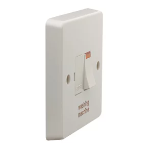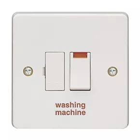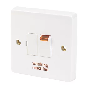 Switched fused connection unit 13A double pole with neon indicator. Marked “Washing Machine”.