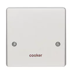 Slimline DP cooker control unit with twin earth. Separate double pole switching for both cooker switch and socket outlet.