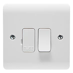 LED indicator integrated in to the rocker switch and has a stylish slim faceplate with curved top and bottom edges. In-line and upward facing terminals remove the need for twisting or turning the faceplate to terminate the connections. Full-contact cable clamp terminals give improved cable retention whilst reducing the risk of cable deformation. Terminals supplied open with captive screws ready for connection. In-line segregated supply and load terminals. Fuse drawer can be locked in open position. Clear, distinct embossing depth on terminal markings.