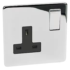 Crabtree Platinum 13A 1-Gang DP Switched Plug Socket Polished Chrome with Black Inserts