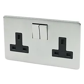 Crabtree Platinum 13A 2-Gang DP Switched Plug Socket Satin Chrome with Black Inserts