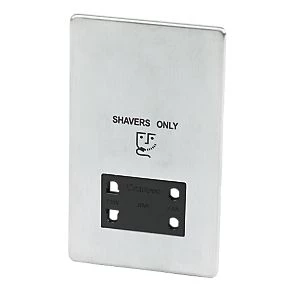 Crabtree Platinum 2-Gang Dual Voltage Shaver Socket 115 / 230V Satin Chrome with Black Inserts